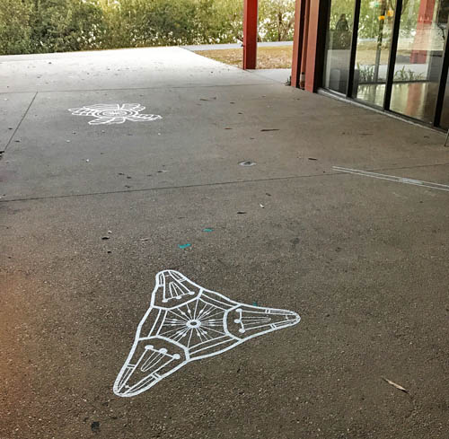 Chaetoceros Lorenzianus - masking tape and bioluminescent tape 5m x 2.5 m Noosa Regional Gallery outside wall.